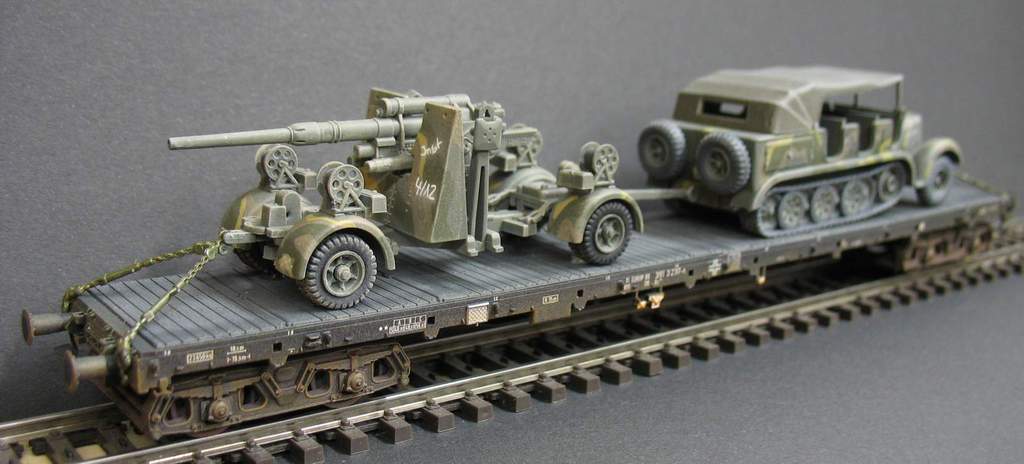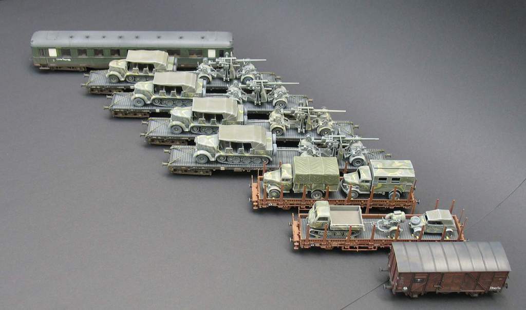 Ein Zug der DRG mit Junkersflugzeugen umlackiert auf Luftwaffe